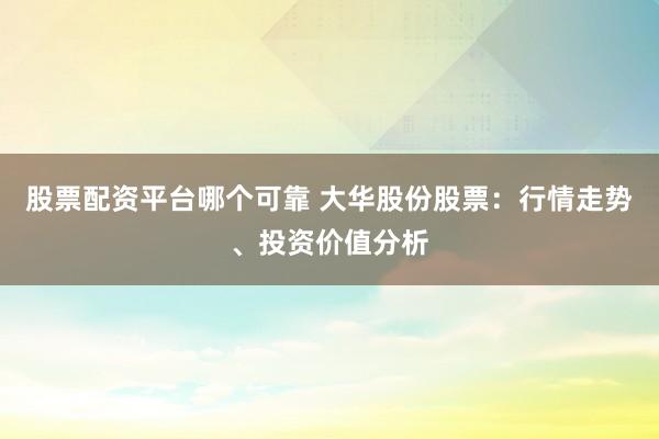 股票配资平台哪个可靠 大华股份股票:行情走势、投资价值分析